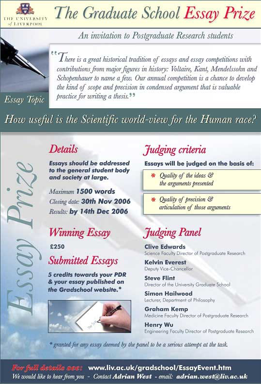 Prize Essay Poster - The University of Liverpool Graduate School, September 2006