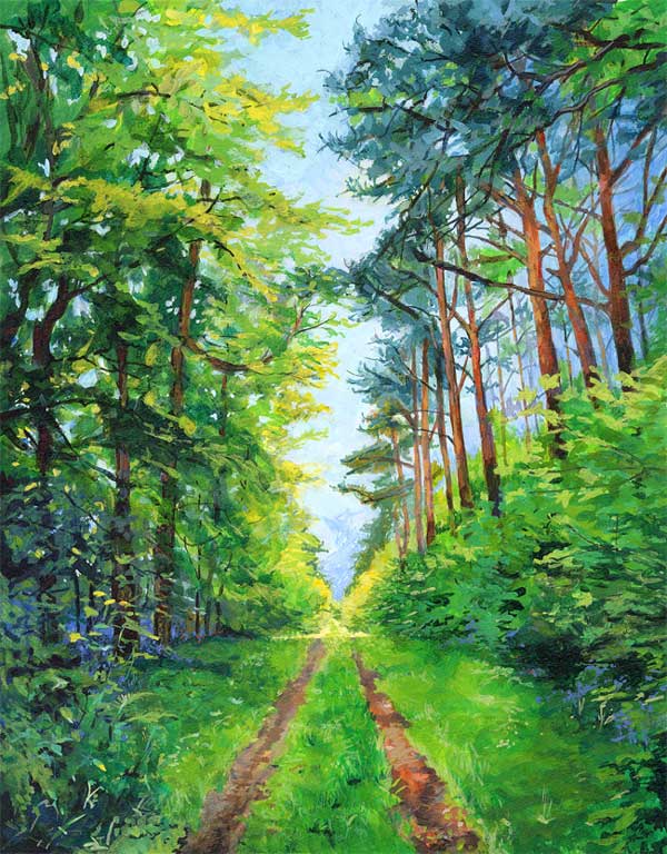 Woodland Walk - the scots pines whisper to the lime green trees while bluebells listen